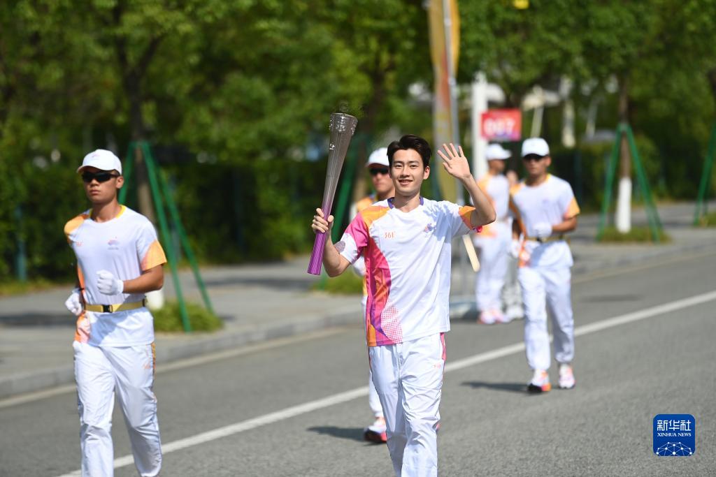 当日,杭州亚运会火炬在浙江省宁波传递。