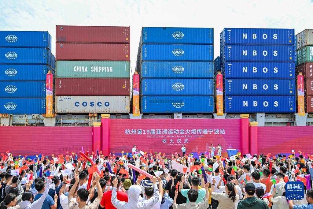 当日,杭州亚运会火炬在浙江省宁波传递。