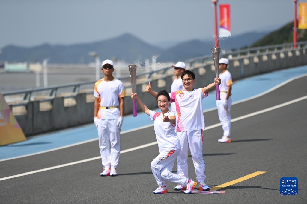 当日,杭州亚运会火炬在浙江省宁波传递。