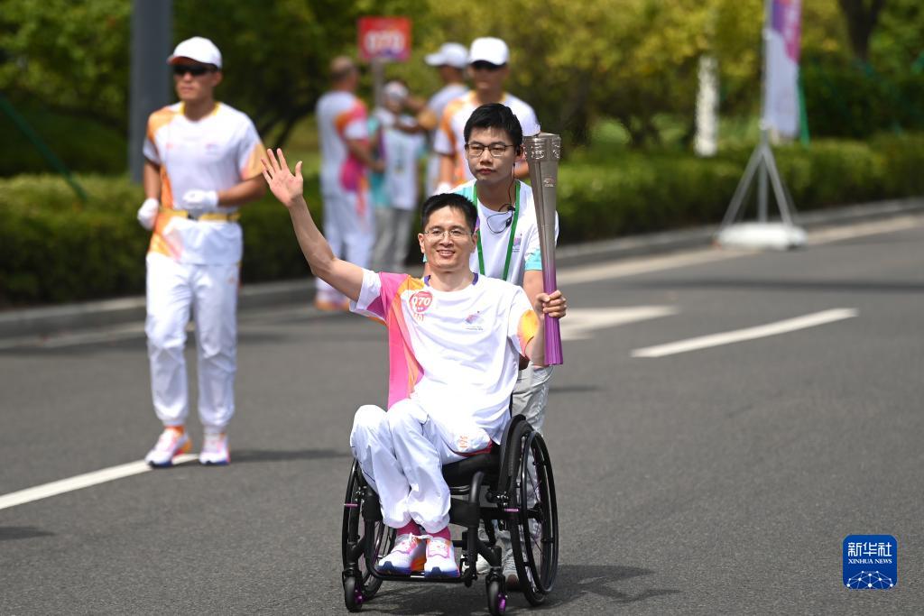 当日,杭州亚运会火炬在浙江省宁波传递。