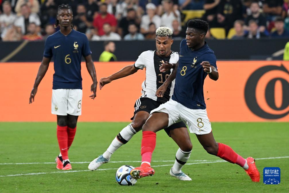 当日,在德国多特蒙德举行的一场国际男子足球友谊赛中,德国队以2比1战胜法国队。
