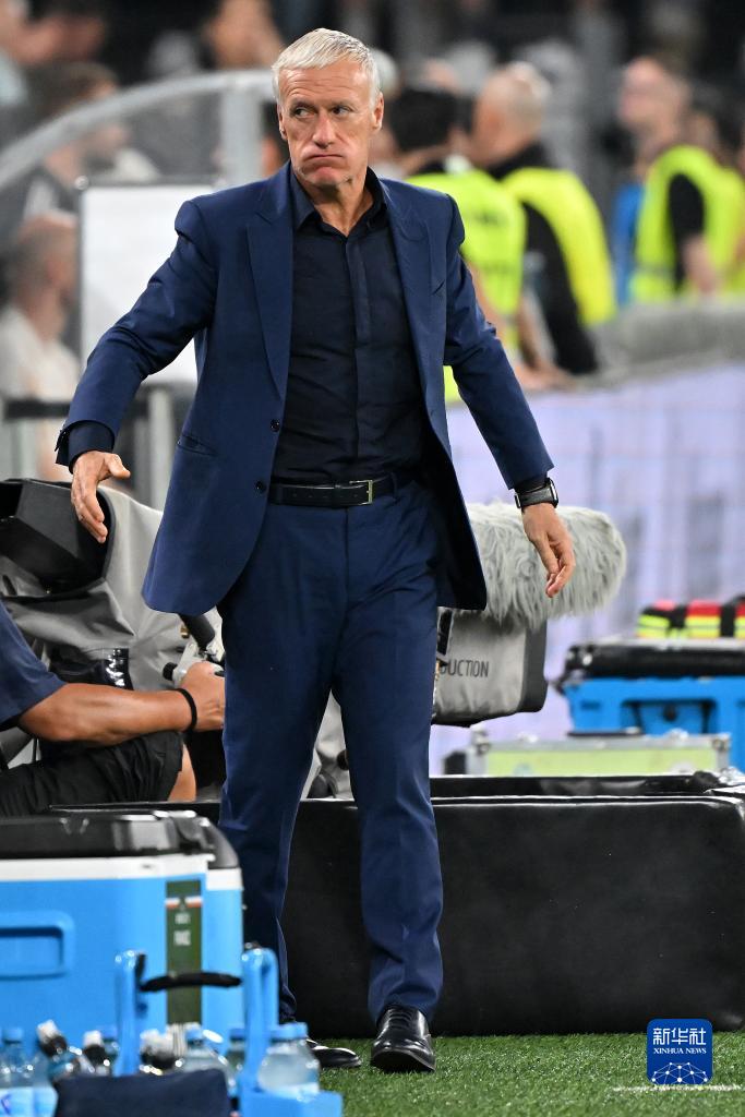 9月12日,法国队主教练迪迪埃·德尚在场边指导。新华社发(乌尔里希·胡夫纳格尔 摄)