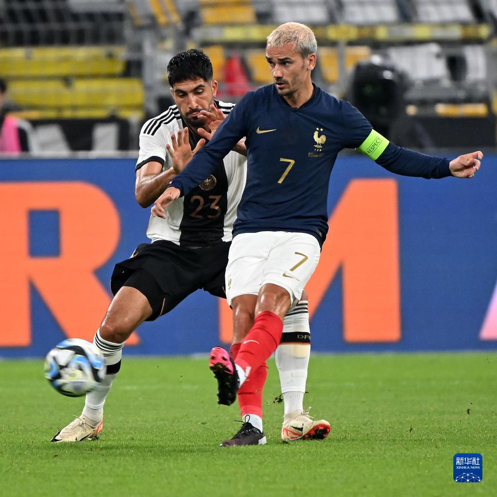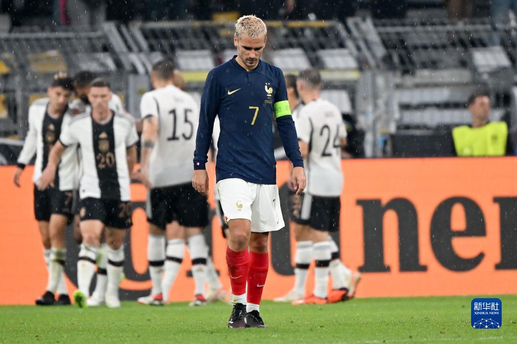 9月12日,法国队球员格里兹曼在德国队打入第二粒进球后。新华社发(乌尔里希·胡夫纳格尔 摄)