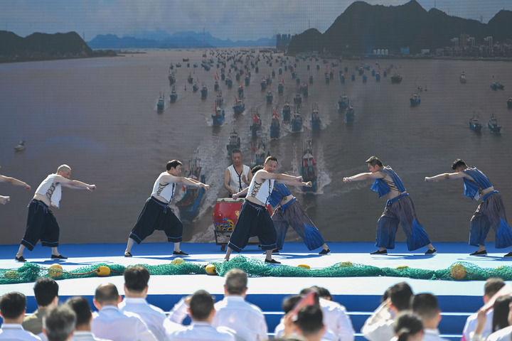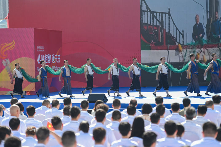 杭州亚运会火炬传递舟山站起跑仪式前的暖场节目《普陀渔民号子》