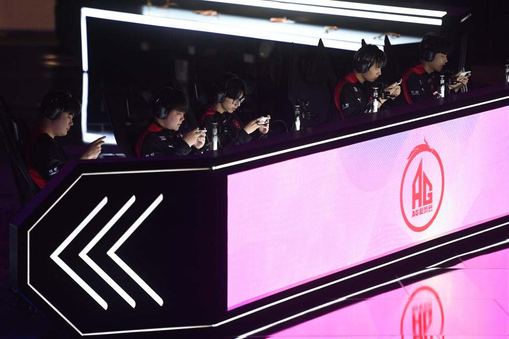 5月21日,南京Hero久竞队选手在比赛中。当日,在杭州电竞中心举行的“韵味杭州”电子竞技全国邀请赛王者荣耀亚运版决赛中,成都AG超玩会队以3:2战胜南京Hero久竞队,获得冠军。新华社记者吴壮摄