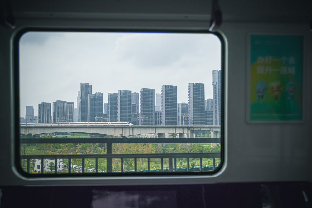 ↑杭州地铁“亚运号”专列经过亚运村。