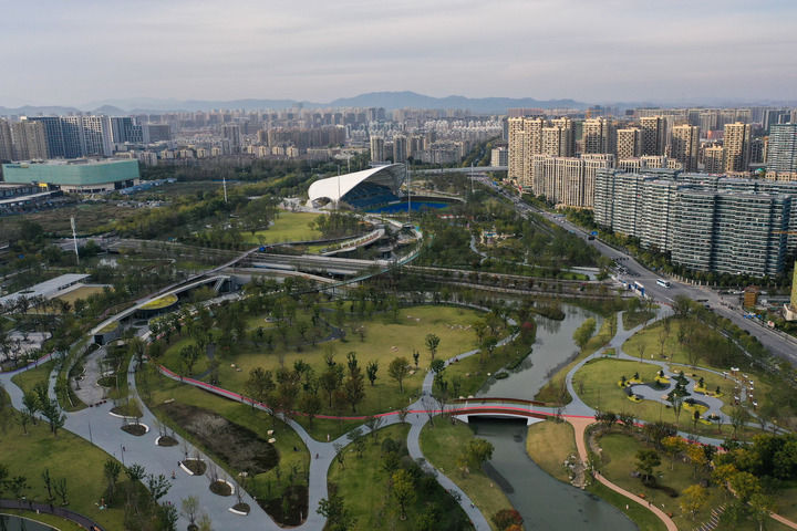 ↑俯瞰大运河亚运公园。