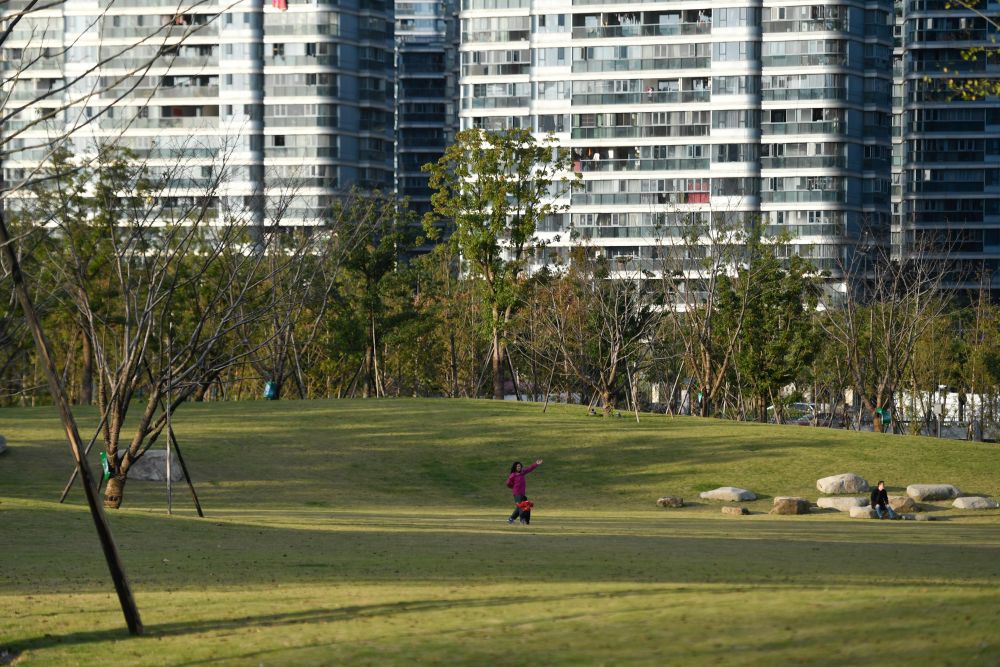 ↑市民在大运河亚运公园里休闲健身。