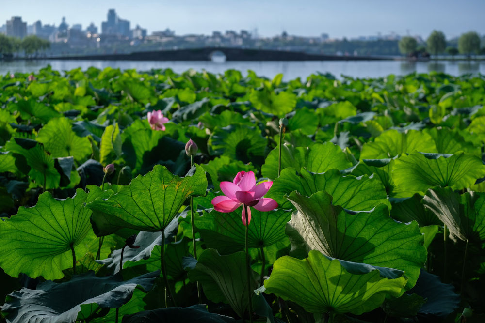 ↑西湖景区荷花盛开。