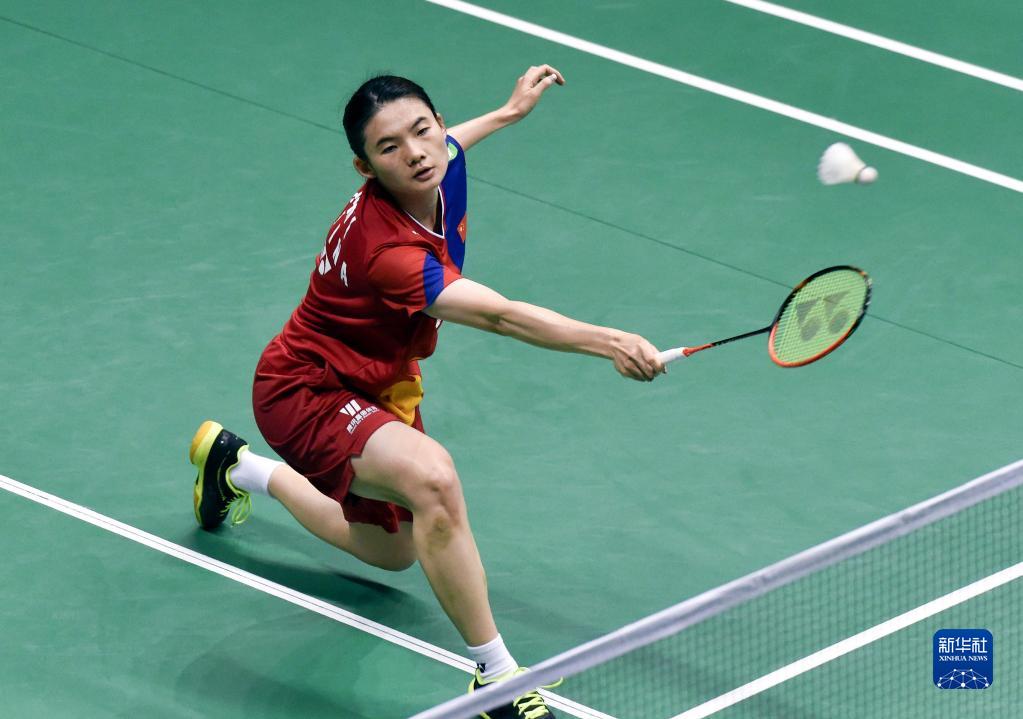 当日,在香港体育馆举行的2023香港羽毛球公开赛女子单打首轮比赛中,中国选手韩悦以2比0战胜日本选手川上纱惠奈,晋级下一轮。
