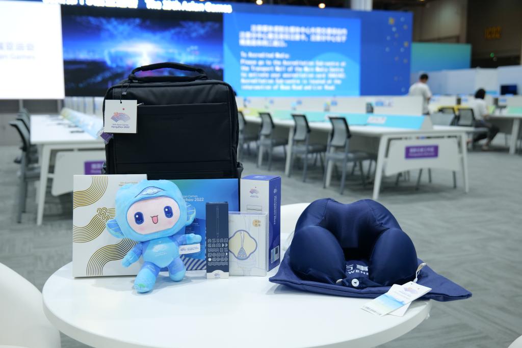 图为杭州亚运会媒体包和内部产品。新华社记者江汉 摄