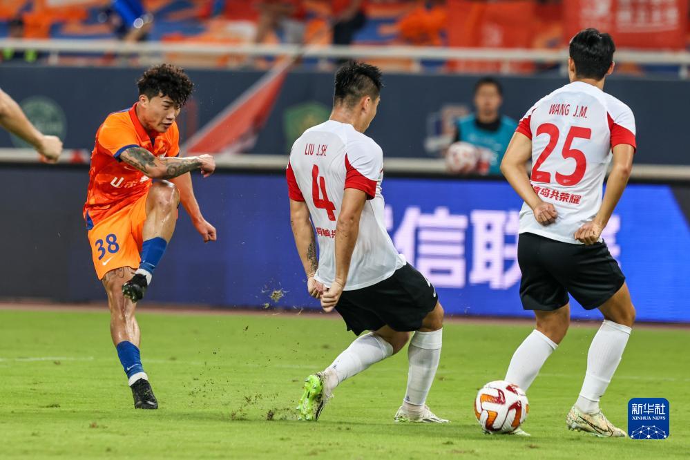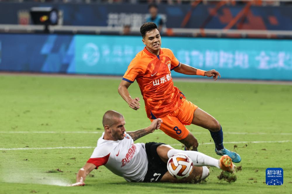 当日,在山东济南举行的2023赛季中国足球协会超级联赛第25轮比赛中,山东泰山队主场以4比2战胜青岛海牛队。