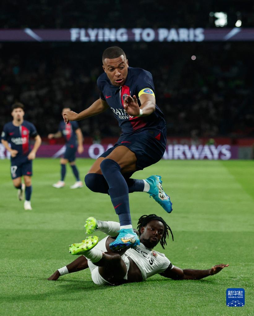 9月15日,巴黎圣日耳曼队球员姆巴佩(中)带球突破。新华社/路透