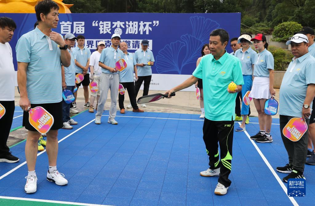 9月16日,教练员黄凯平(前右)在讲解匹克球动作要领和竞赛规则。新华社记者 杨磊 摄