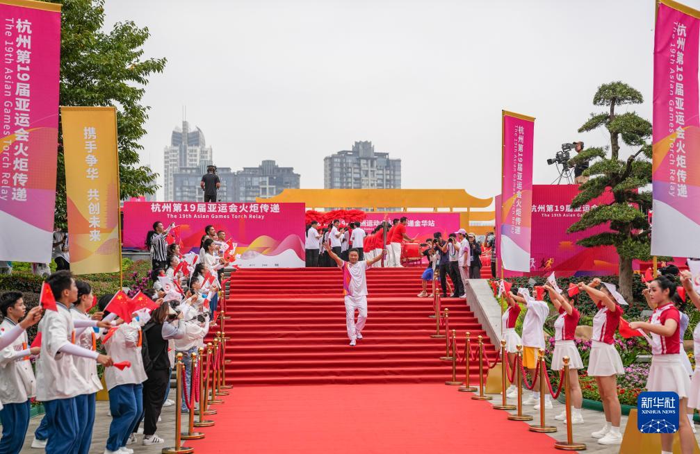 当日,杭州亚运会火炬在浙江省金华传递。