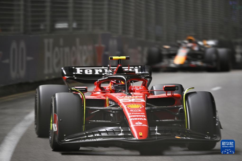 9月17日,法拉利车队西班牙车手塞恩斯在比赛中。新华社发(邓智炜摄)