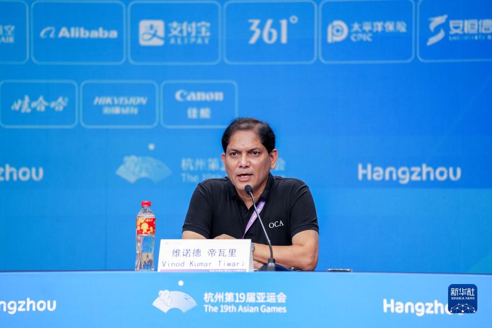 9月18日,亚奥理事会代理总干事维诺德·帝瓦里在新闻发布会上发言。