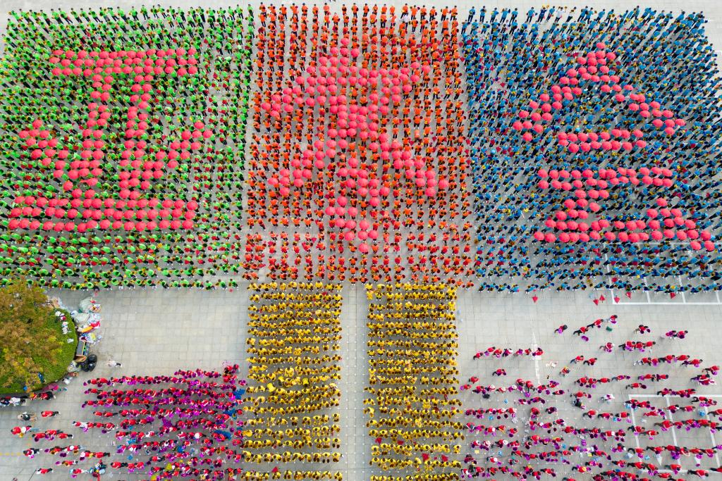 这是7月8日拍摄的在哈尔滨市太阳岛景区太阳石广场举行的庆祝仪式现场(无人机照片)。新华社记者张涛摄