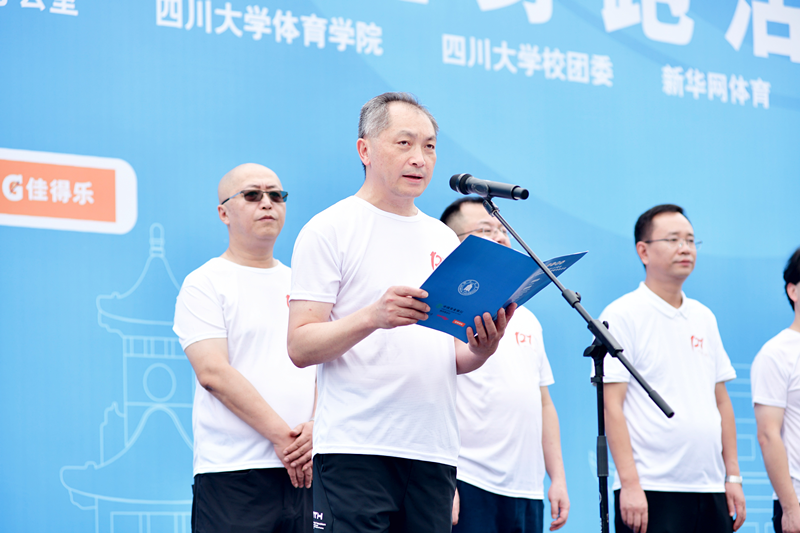 启动仪式上,四川大学党委副书记张伟代表四川大学致辞,他表示四川大学一直以来非常重视文化建设,“乐跑回家”校园健身跑活动以体育运动为载体,成为建设川大校园文化和校友文化的重要途径,两者共同塑造着川大文化,展现了川大人朝气蓬勃,海纳百川的精神面貌。“乐跑回家”也是四川大学为校友们打造的返校赛事之一,让校友们在校庆期间能够重回母校,重温青春记忆,用脚步丈量母校一草一木一景,无论未来走得多远,飞得多高,四川大学永远欢迎校友常回家看看。