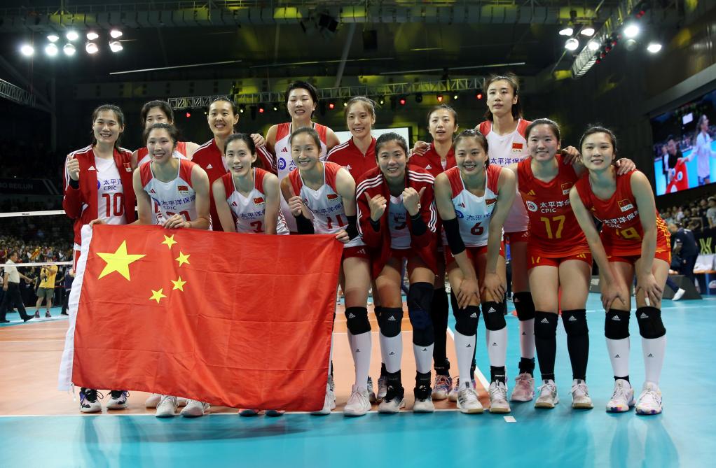 9月24日,中国女排球员在赛后合影。新华社发(索向鲁摄)