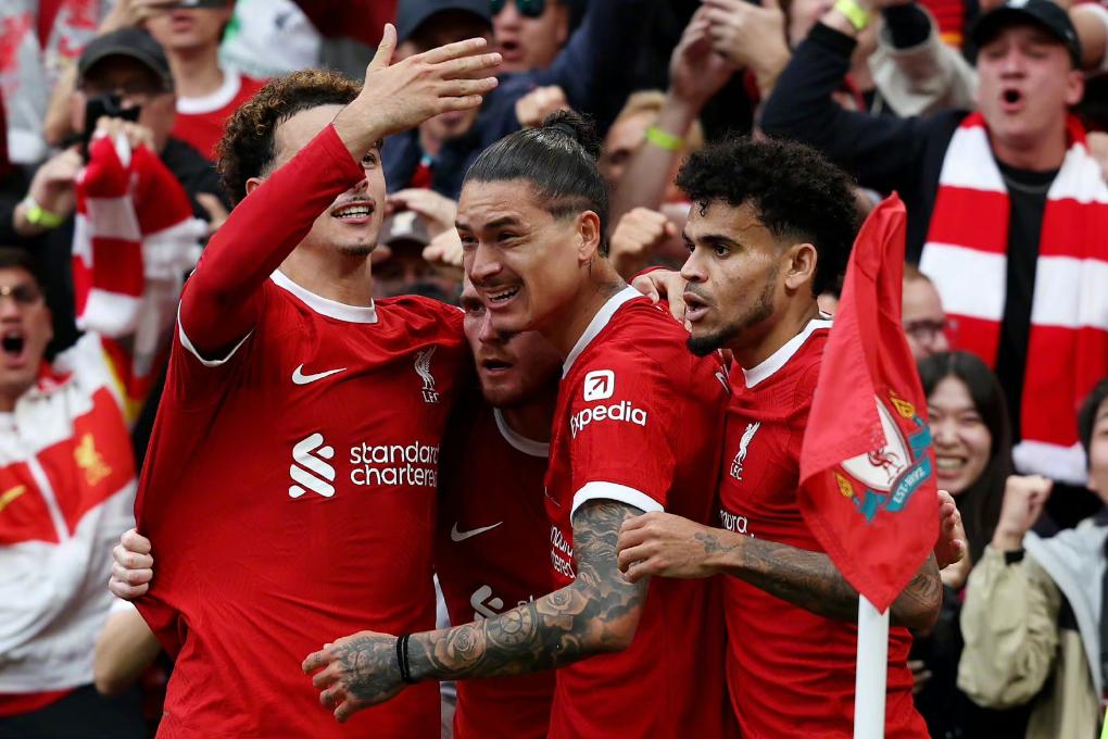 机会更多的利物浦下半场实现超越,先是努涅斯禁区内接麦卡利斯特的过顶妙传凌空打门命中,而后若塔门前推射将比分锁定在3:1。
