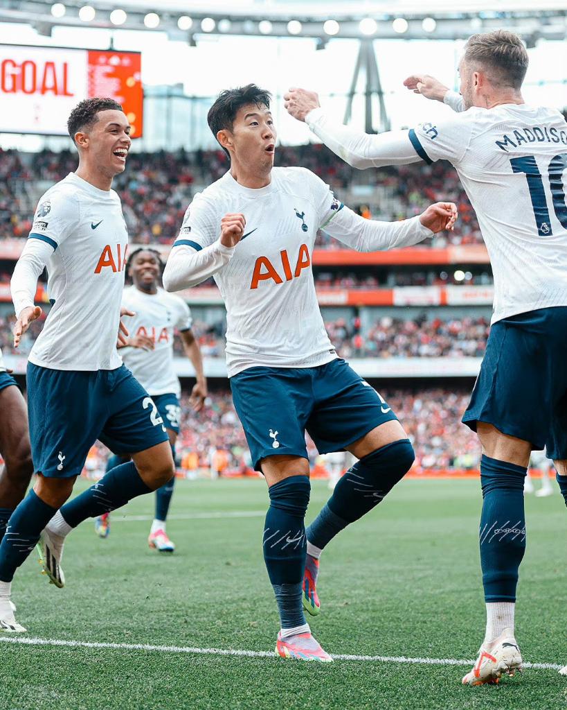托特纳姆热刺队球员在比赛中庆祝。图片来自俱乐部官方社交媒体账号