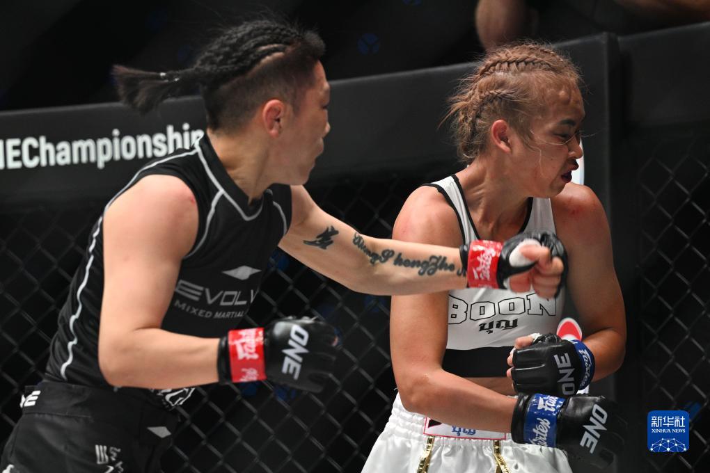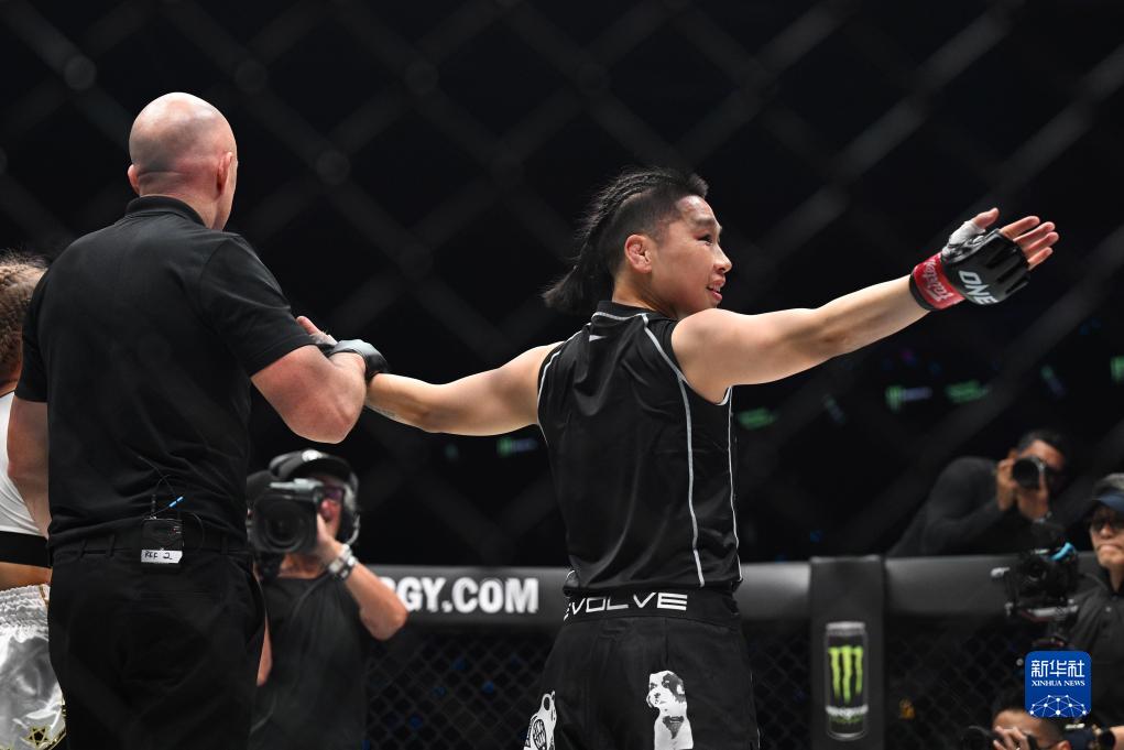 当日,在新加坡室内体育场举行的ONE巅峰系列赛女子草量级冠军赛中,中国选手熊竞楠战胜泰国选手“神奇女孩”纳特·雅鲁萨克,第七次卫冕ONE世界冠军。