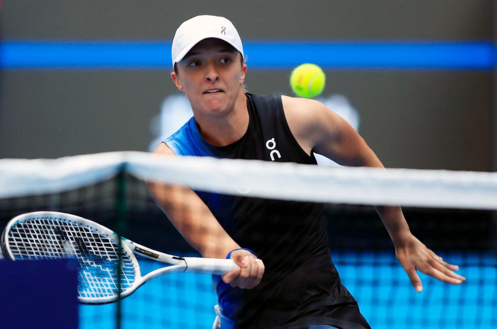 10月7日,斯维亚特克在比赛中回球。新华社记者 雒圆 摄