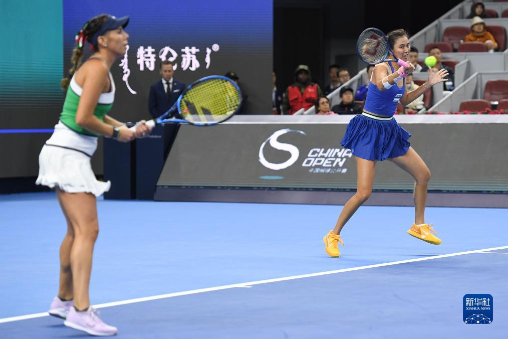 10月8日,詹皓晴(右)/奥尔莫斯在比赛中。新华社记者 鞠焕宗 摄