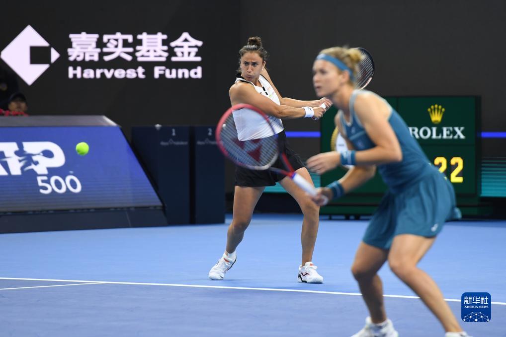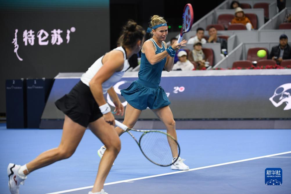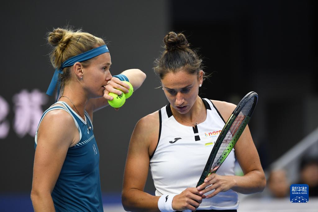 10月8日,布兹科娃(右)/托莫在比赛中。新华社记者 鞠焕宗 摄