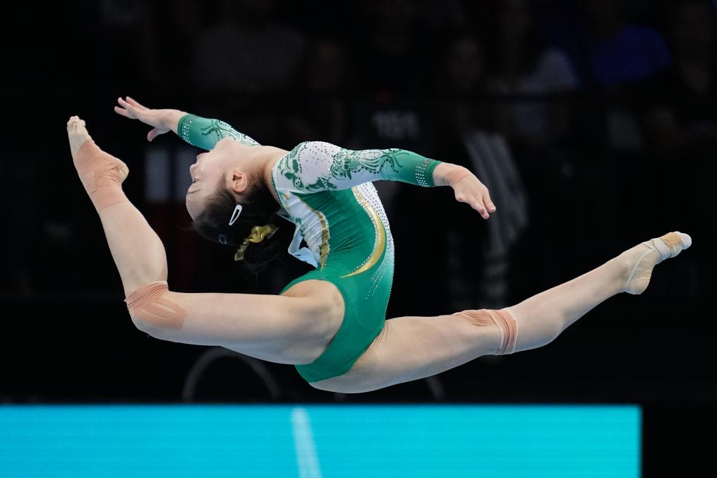 10月8日,周雅琴在女子自由操决赛中。新华社记者 郑焕松 摄