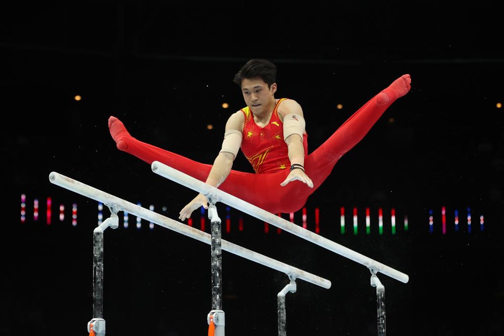 10月8日,中国选手侍聪在双杠决赛中。新华社记者 赵丁喆 摄