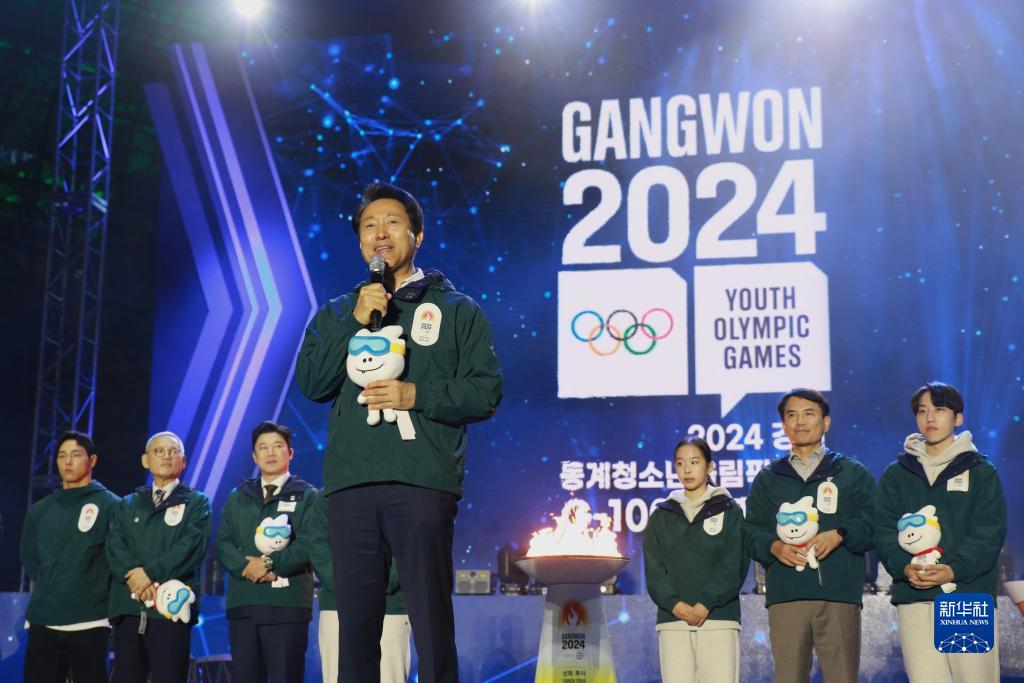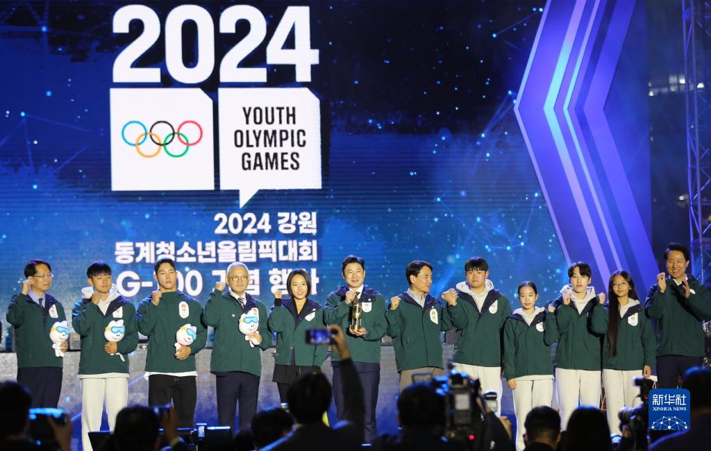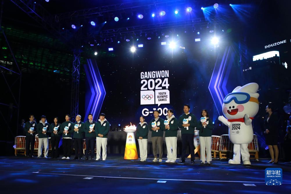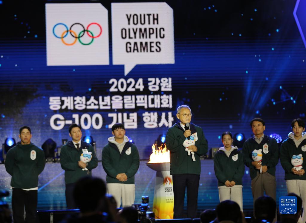 当日,2024年江原道冬青奥会倒计时100天活动在韩国首尔举行。