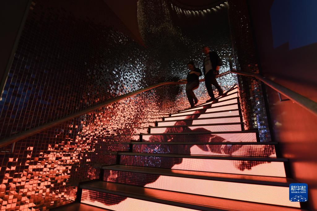 10月12日,在瑞士苏黎世,人们走下国际足联博物馆的台阶。新华社记者 连漪 摄