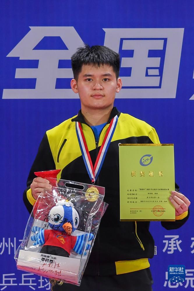 当日,在江苏扬州举行的2023年全国乒乓球锦标赛决赛男单决赛中,海南队选手林诗栋以3比0战胜上海地产集团队选手周恺,获得冠军。