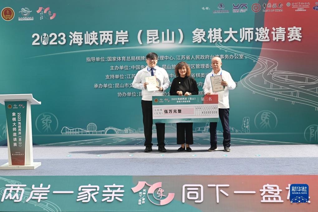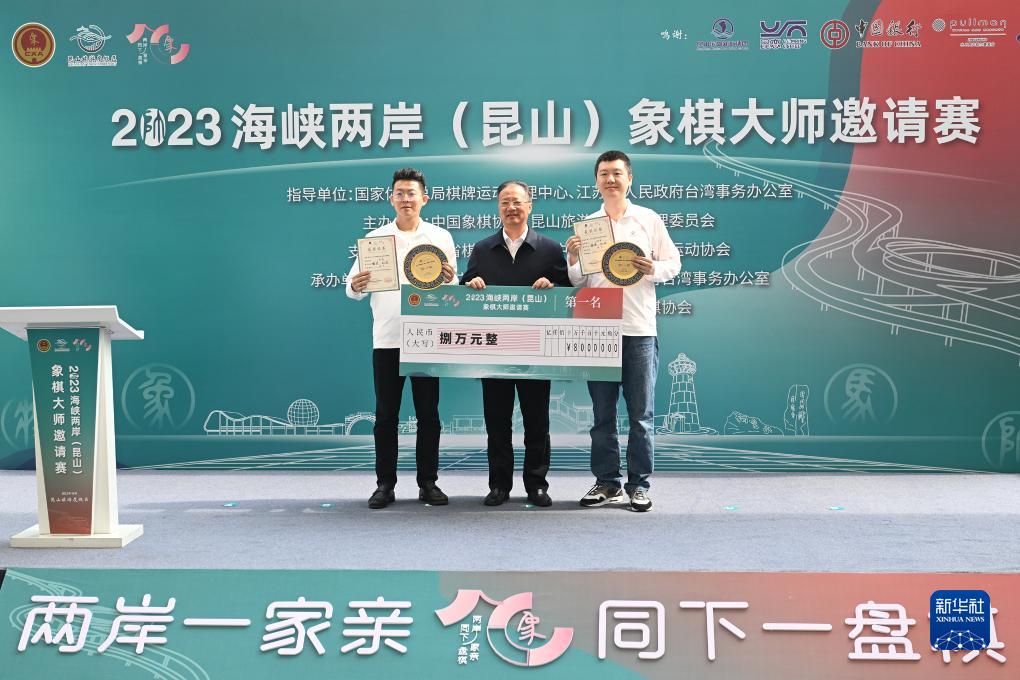 当日,海峡两岸(昆山)象棋大师邀请赛决赛在江苏省昆山旅游度假区举行。双方第一局慢棋战平,第二局快棋战平,附加赛谢靖/马正伦组合击败赵国荣/游原硕组合,夺得冠军。