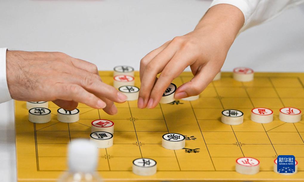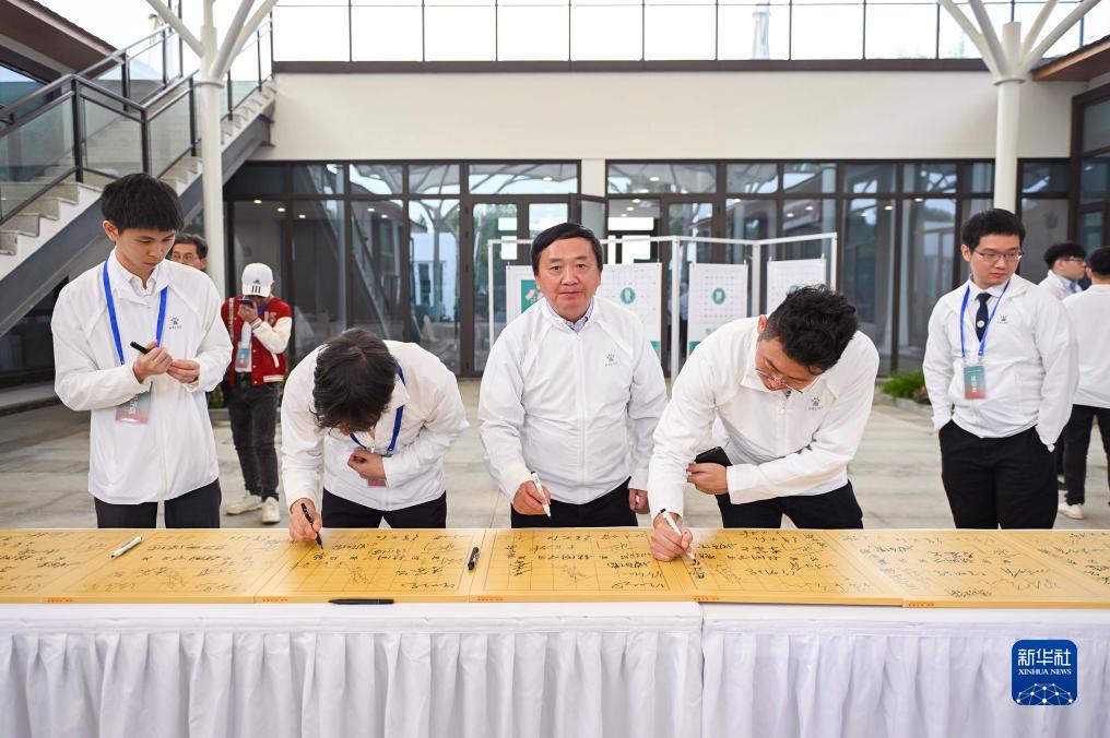 10月14日,选手们赛后在棋板上签名。新华社发(王须中 摄)