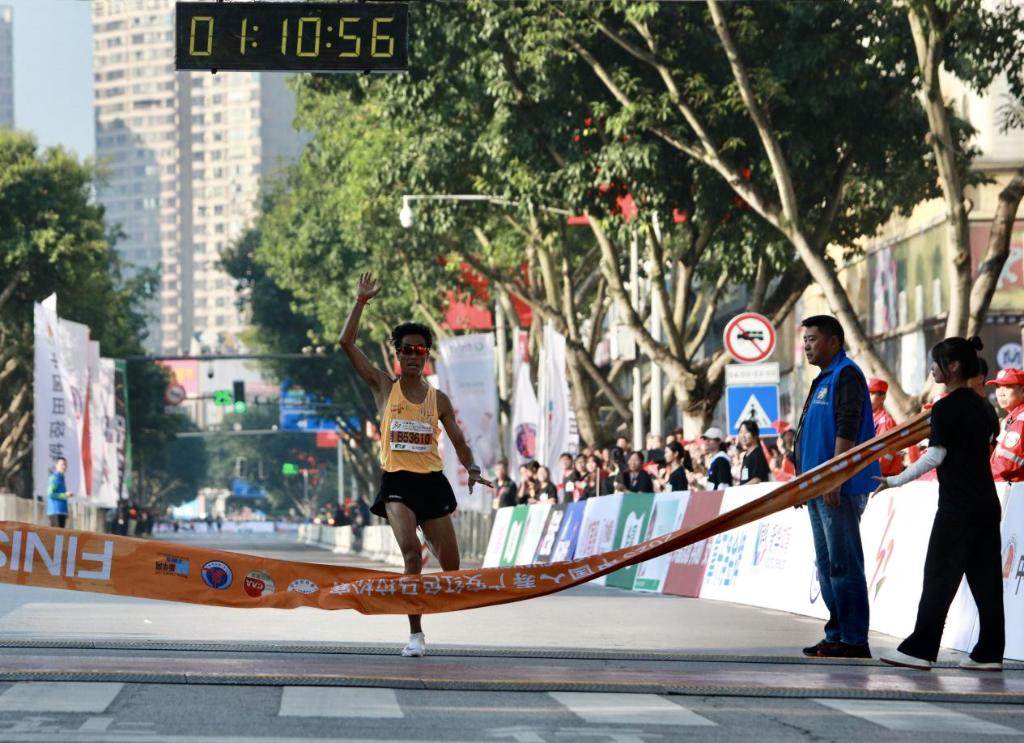 当日7时30分许,随着发令枪响,参赛选手从思源广场起跑拱门出发。经过激烈角逐,阿巴巴以2小时16分16秒夺得男子全程冠军,萨尔贡以2小时41分41秒夺得女子全程冠军并打破赛事纪录。四川选手伍二清以1小时10分07秒夺得男子半程冠军,重庆选手冯丹以1小时17分59秒获得女子半程冠军。
