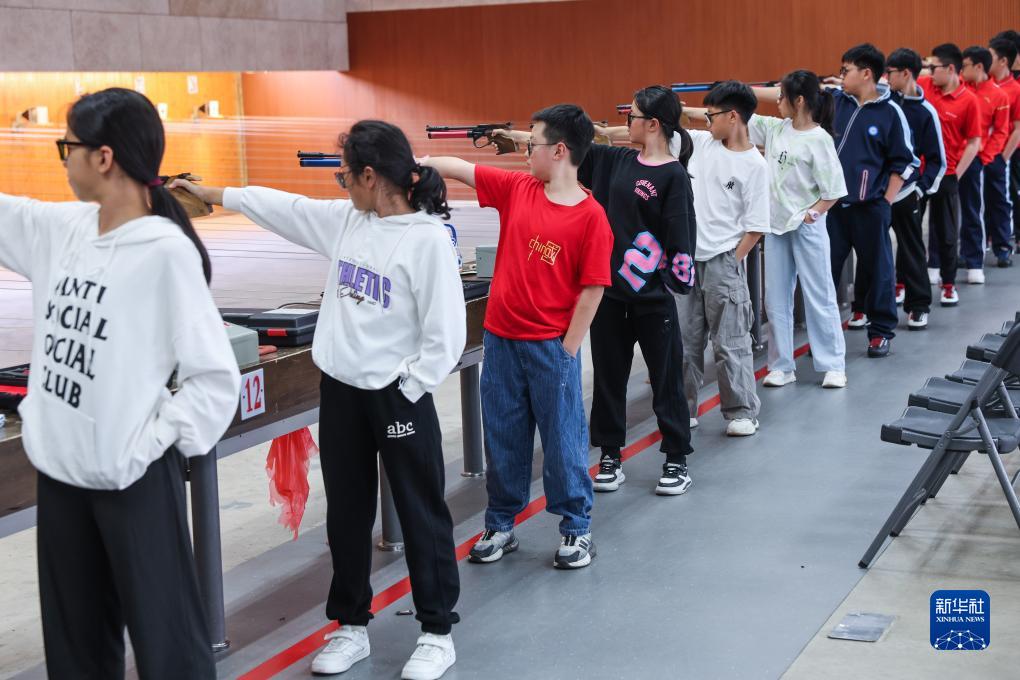 10月18日,体教融合班的中小学生进行射击训练。新华社记者 徐昱 摄