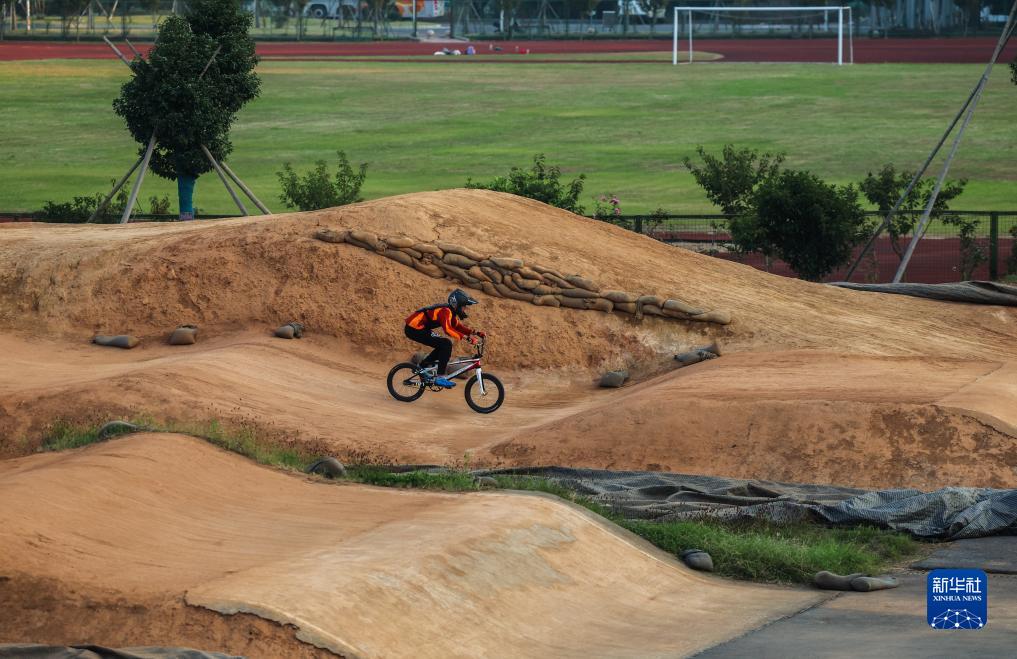 10月18日,体教融合班的学生进行小轮车训练。新华社记者 徐昱 摄