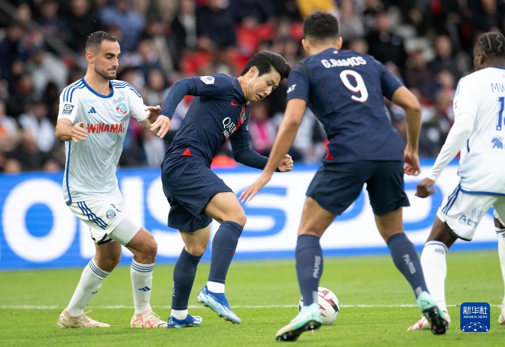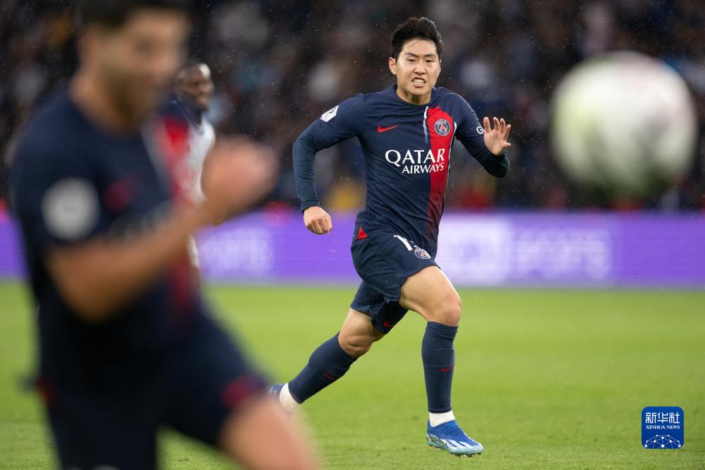 10月21日,巴黎圣日尔曼队球员李刚仁在比赛中。新华社发(杰克·陈摄)