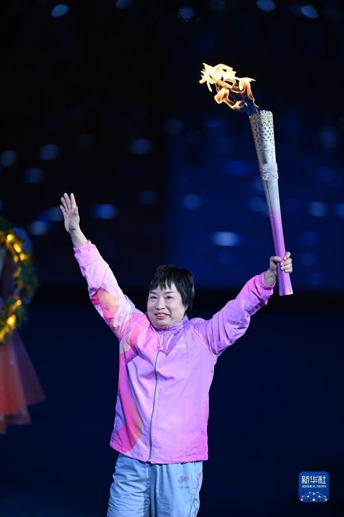 10月22日,火炬手郑雄鹰在开幕式上传递火炬。