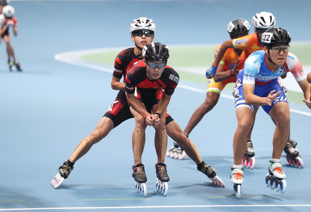 在速度轮滑场地赛的20个小项中,中国队共获得9金8铜。其中,潘郅远斩获青年男子组200米追逐赛、青年男子组500米+D争先赛、青年男子组1000米争先赛、青年男子组10000米淘汰赛4项比赛冠军;张振海夺得成年男子组200米追逐赛、成年男子组500米+D争先赛、成年男子组10000米淘汰赛3项冠军;吴俊言获青年男子组10000米积分淘汰赛冠军;中国队获青年男子组3000米接力赛冠军。