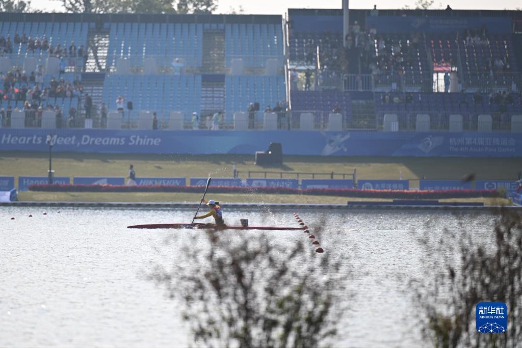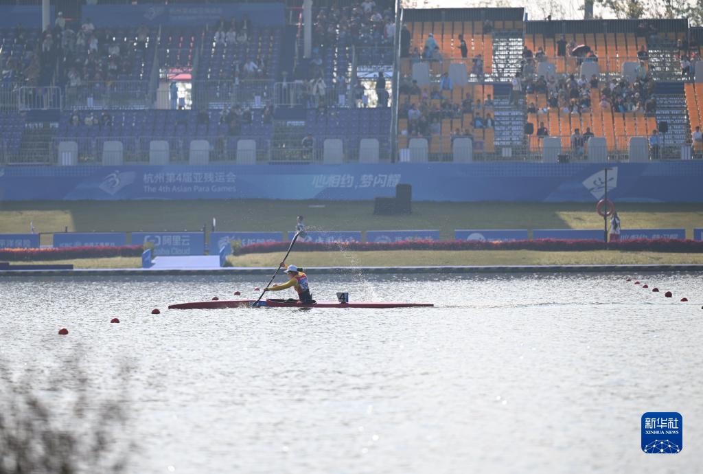 当日,在杭州富阳水上运动中心举行的杭州第4届亚残运会皮划艇女子KL1级决赛中,中国选手谢毛三以55秒478的成绩夺冠,获得本届亚残运会首金。