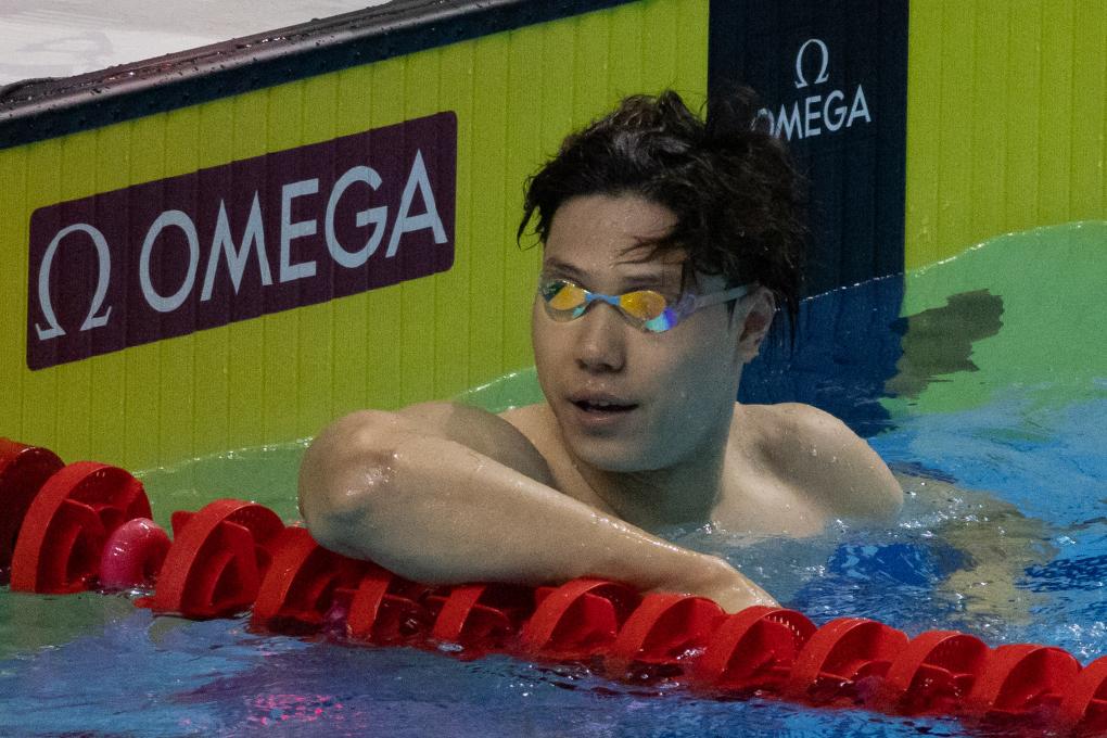 10月21日,覃海洋在男子50米蛙泳决赛后。新华社发(弗尔季·奥蒂洛摄)