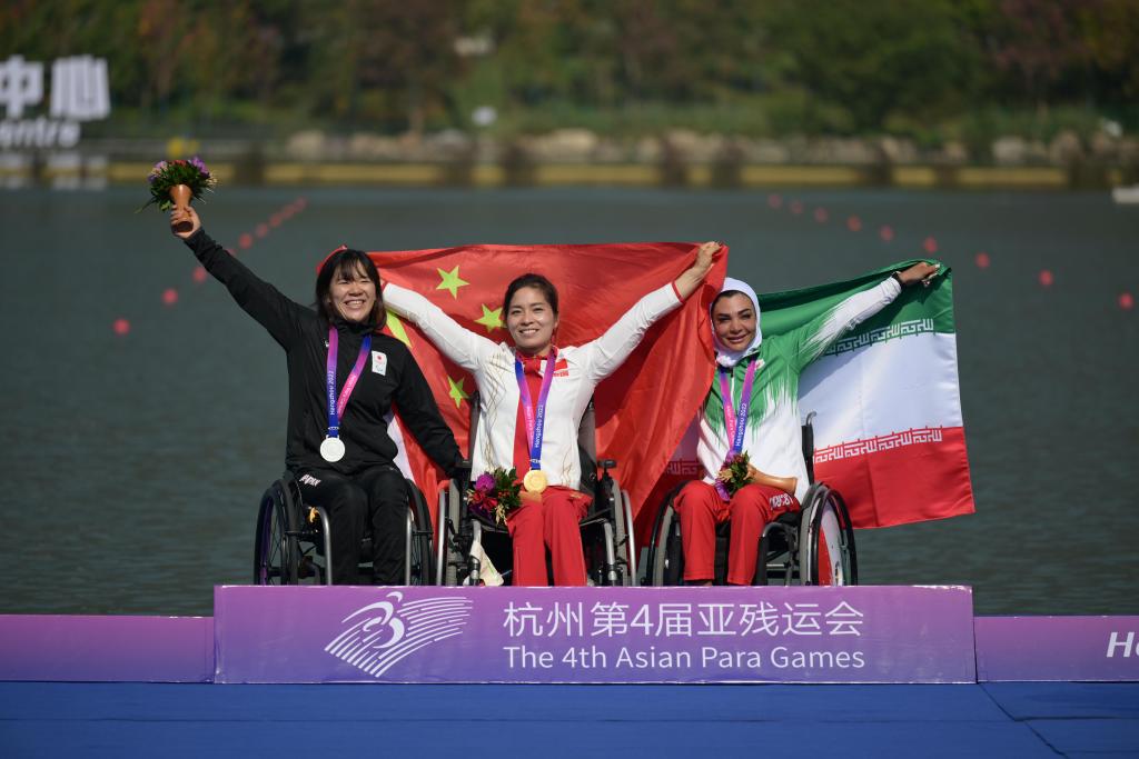 新华社杭州10月23日电(记者戴锦镕、崔力)23日上午,杭州第四届亚洲残疾人运动会皮划艇女子KL1级决赛在杭州富阳水上运动中心举行,中国选手谢毛三以55秒478的成绩夺冠,获得本届亚残运会首金。