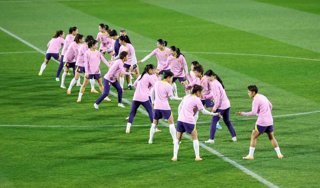 7月31日,中国女足队员进行赛前训练,为迎战2023年国际足联女足世界杯小组赛最后一个对手英格兰队做准备。新华社记者 白雪飞 摄