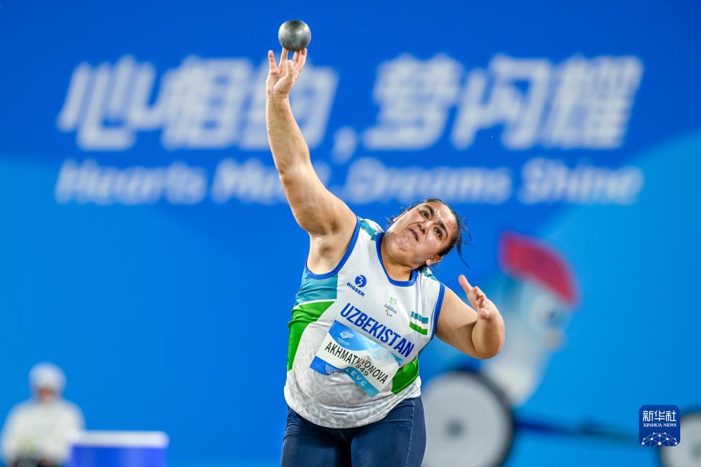 10月25日,乌兹别克斯坦选手迪拉夫任·阿赫马托诺娃在女子铅球F35/36/37级决赛中。最终,她获得第四名。新华社记者 伍志尊 摄