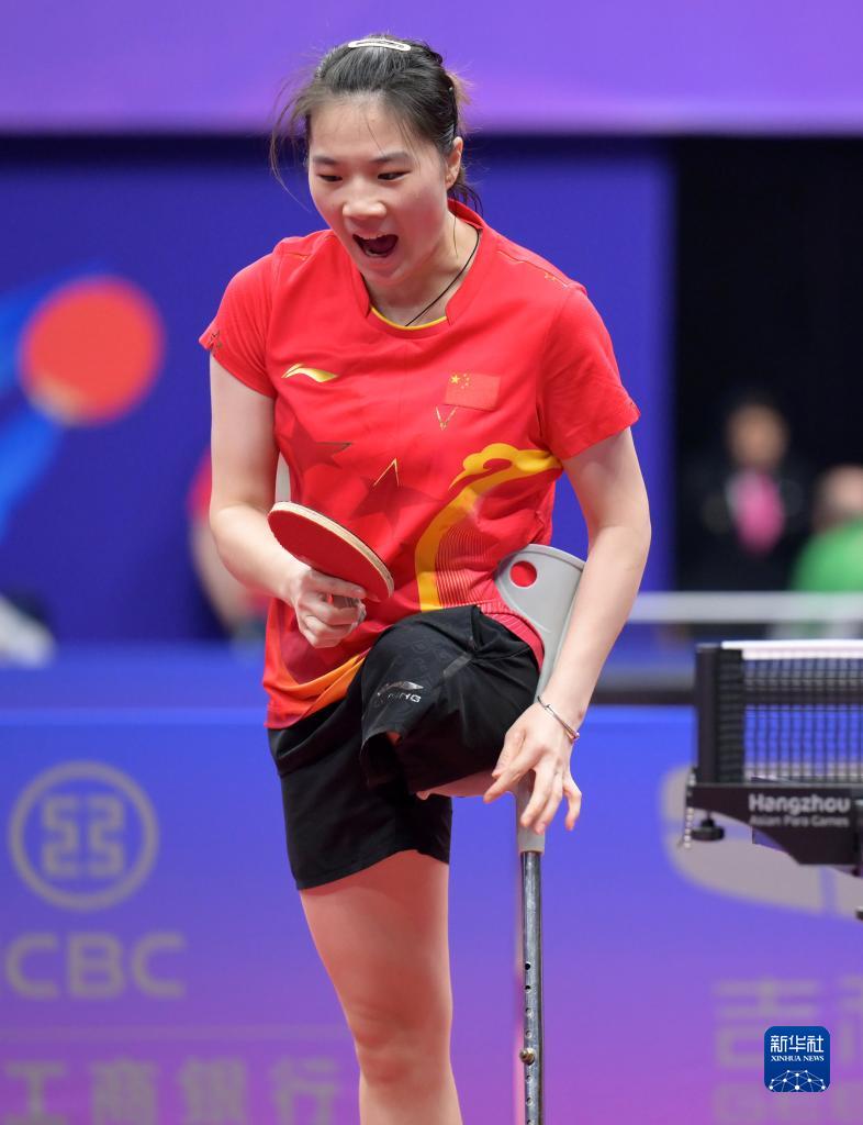 当日,在杭州第4届亚残运会乒乓球女子单打8级决赛中,中国选手黄文娟以3比2战胜日本选手友野有理,获得冠军。