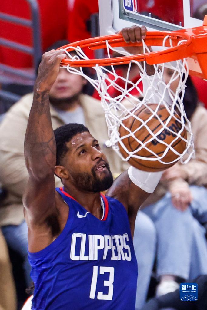 10月25日,快船队球员保罗·乔治在比赛中扣篮。新华社发(赵汉荣摄)